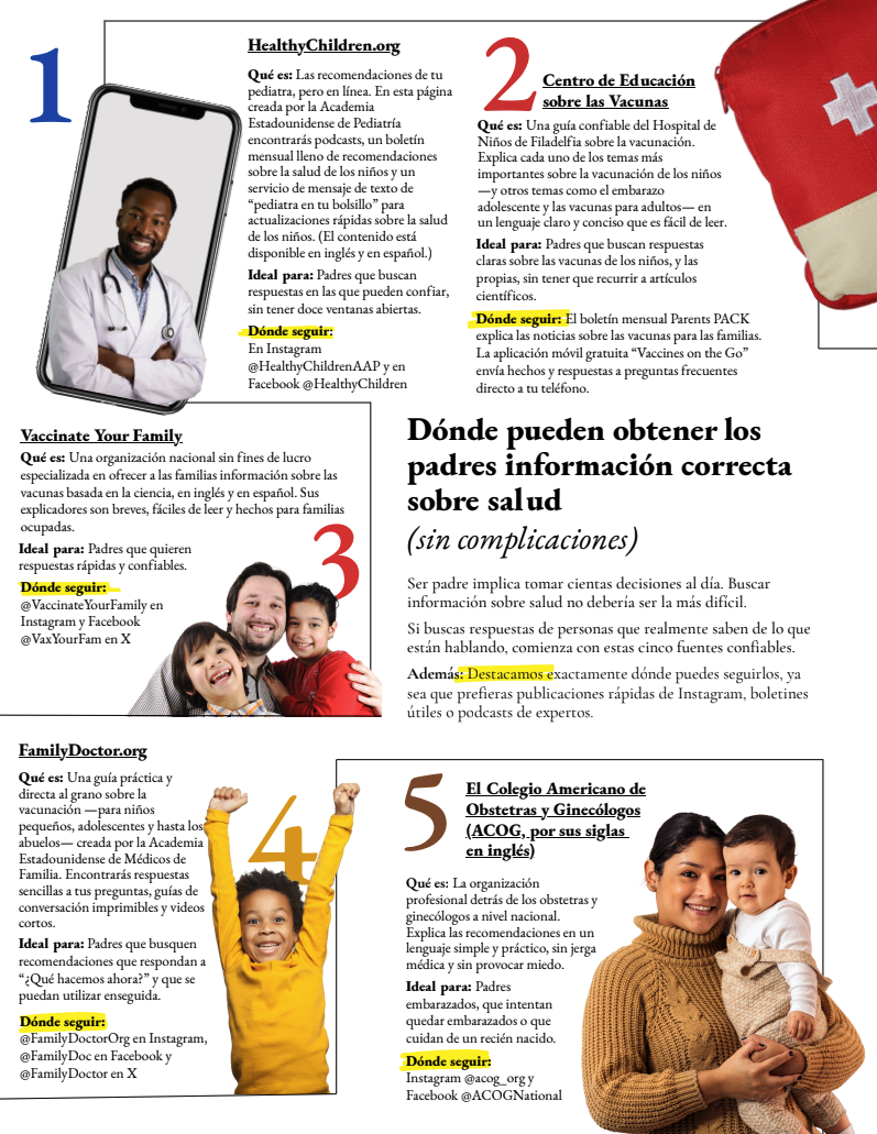 This factsheet highlights five places where parents can find clear, science-based guidance on kids’ health: HealthyChildren.org, the Vaccine Education Center at CHOP, Vaccinate Your Family, FamilyDoctor.org, and the American College of Obstetricians and Gynecologists. Each source includes a blurb about what it is, who it’s best for, and where to follow for information. Looking to share this information on social media? Here's a carousel version you can post.