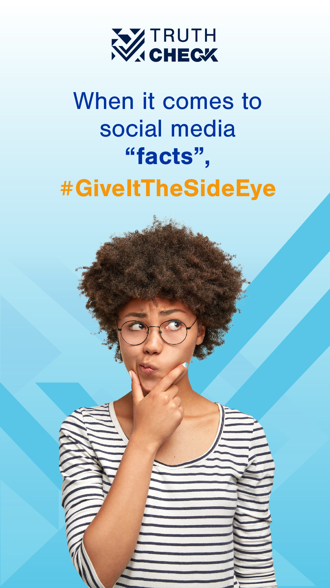 Social Media: Graphic from Truth Check Campaign on Fact-Checking Social Media - Give It the Side Eye